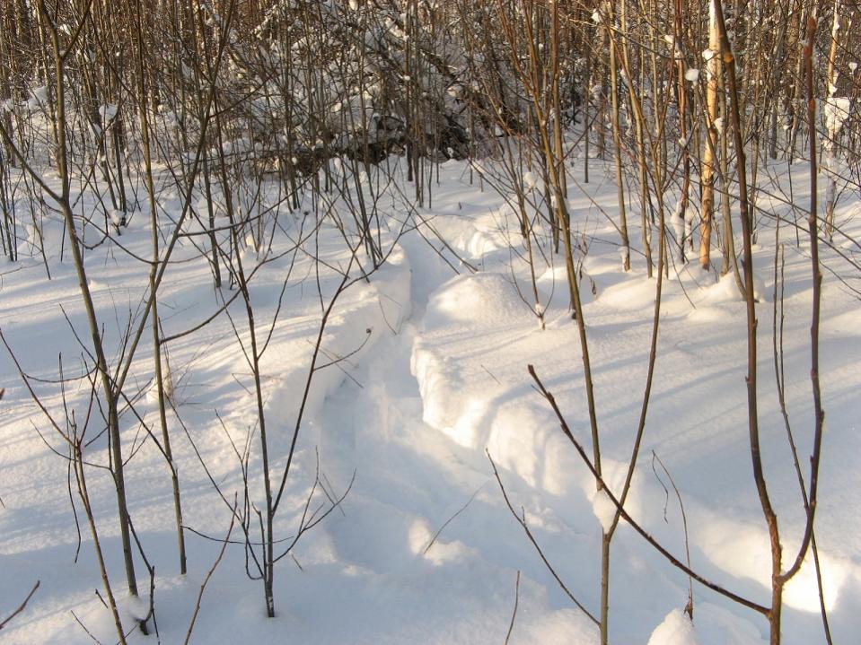 Вот на фото следы от лыж 175 на 15 см. Заметно, что снег рыхлый и довольно глубокий, но ступенек нет.