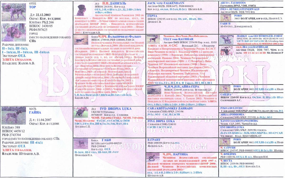 10. Все дипломы за рабочие качества с указанием по виду дичи: РОРС - III ст. ПолеIII ст. Утка, IIст. Вольерный Барсук, IIст. Вольерный Кабан