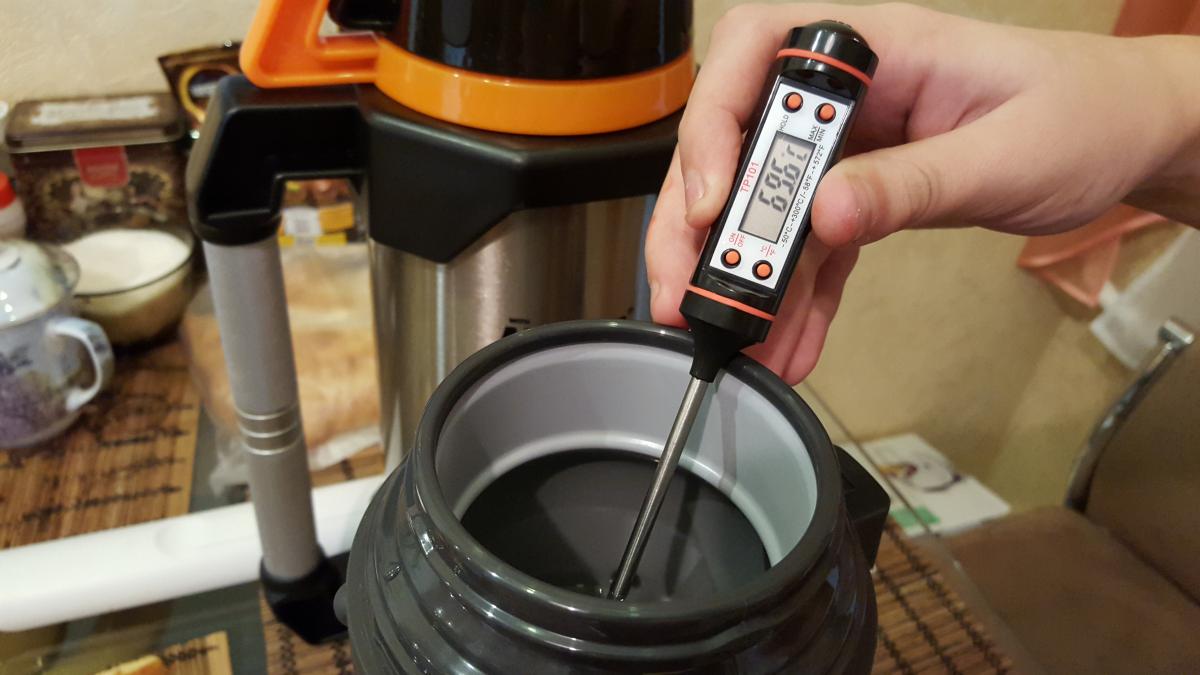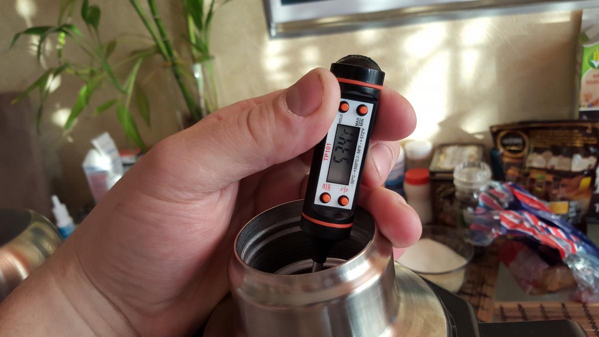 температура помещения не больше 20*С, температура воды 90*С. Каждые 12 часов, я открывал целиком крышки и мерил температуру: