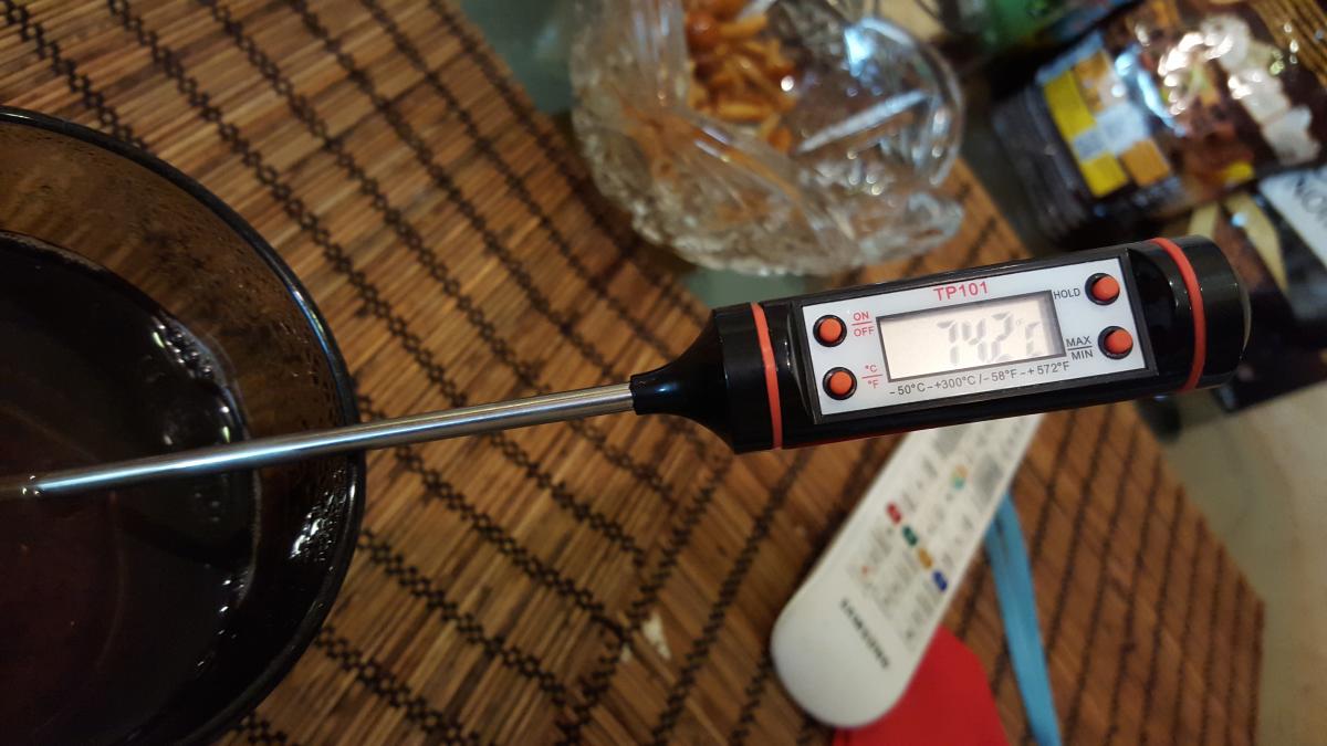 Обращаю внимание, что заварив пакетик чая в большой стеклянной кружке, и размешав ложкой сахар, температура воды была 74*С