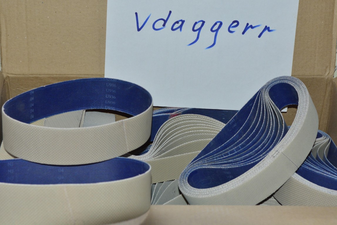 Хочу предложить американскую шлифленту U936 Norax Engineered Ceramic.Дерут очень яростно,я не ножи им точил,но были опробованны на титане и r18,мне понравилось).Лента керамическая,очень живучая,из-за своеобразного рисунка долго не засаливается.