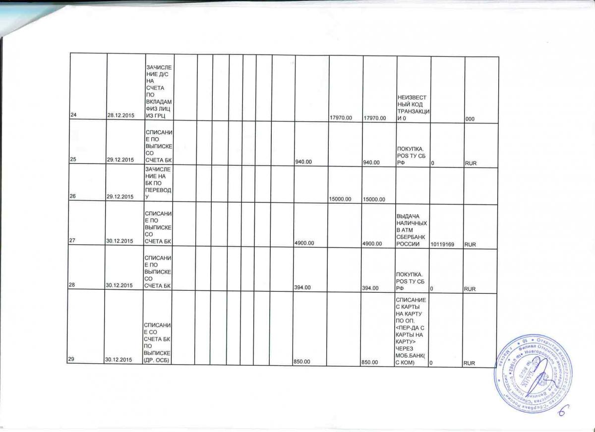 Прилагаю три листа (первый и два последних) подробной выписки за декабрь 2015 года. Остальные не имеют отношения к делу.