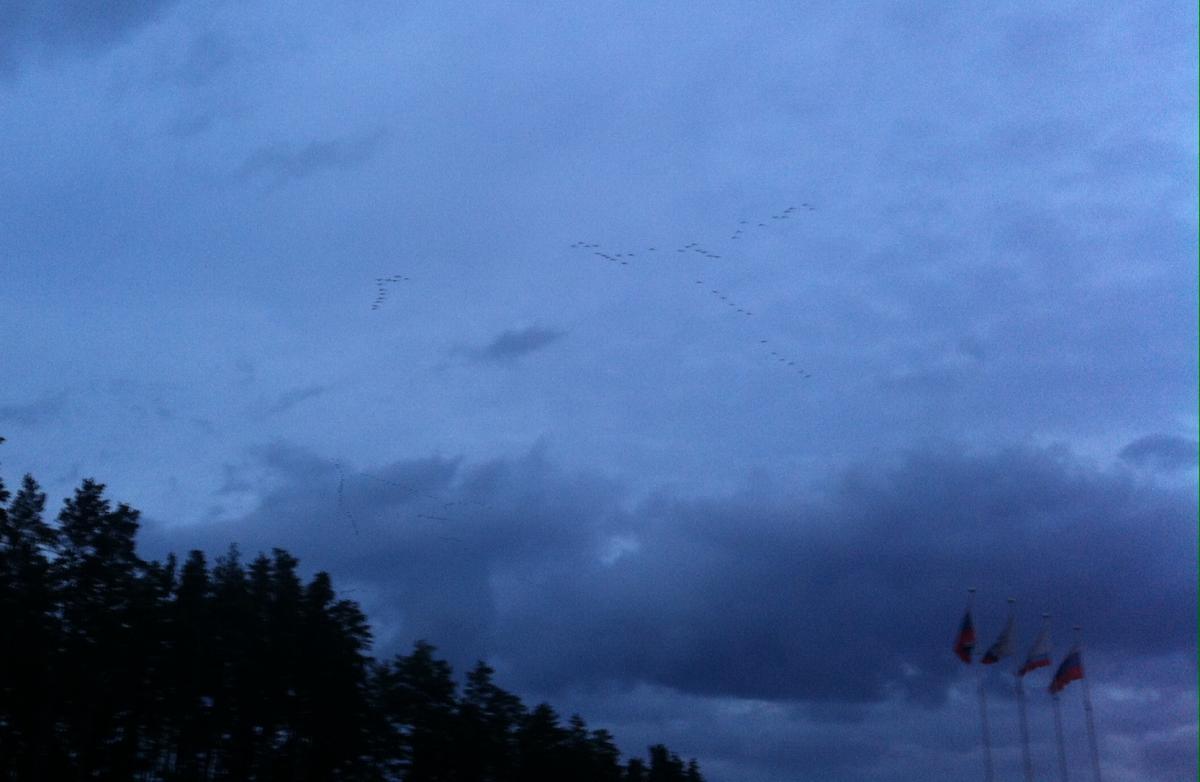 Над Ропшей в 17.45 косяк 20 шт, на восток, низэнько, низэнько) Жаль за рулем был(((