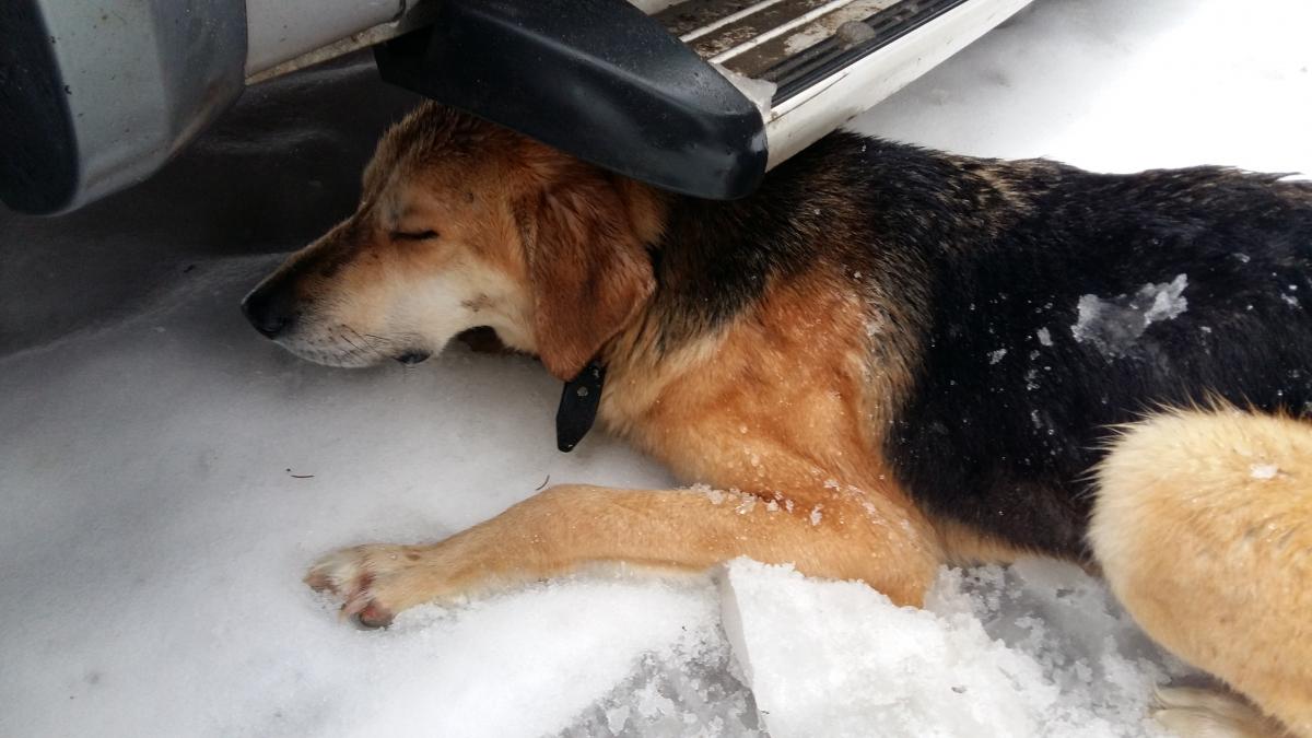 Сегодня 13-го числа, в Выборгском р-не, в угодьях ЛООиР, в районе д. Дружноселье, были замечены два гончака, кобели. Сначала были на гону, работали в смычке кого-то хорошим голосом, через час подошли к нам. Видно что уставшие, лапы в кровь, от еды отказались. Один залез под машину грелся, не давал уехать, второй ходил рядом. Может ищет кто?
