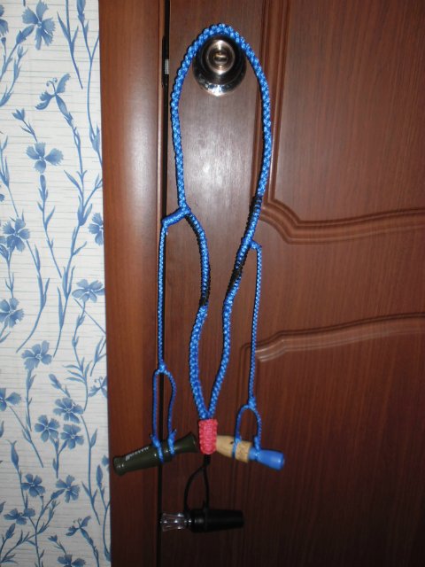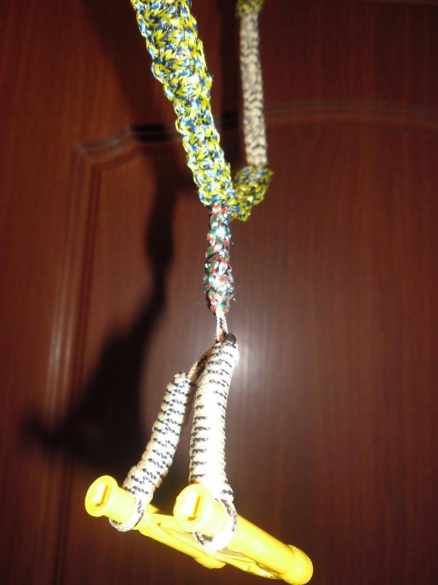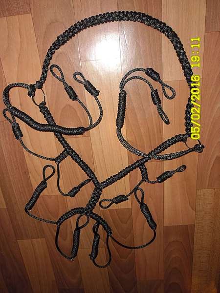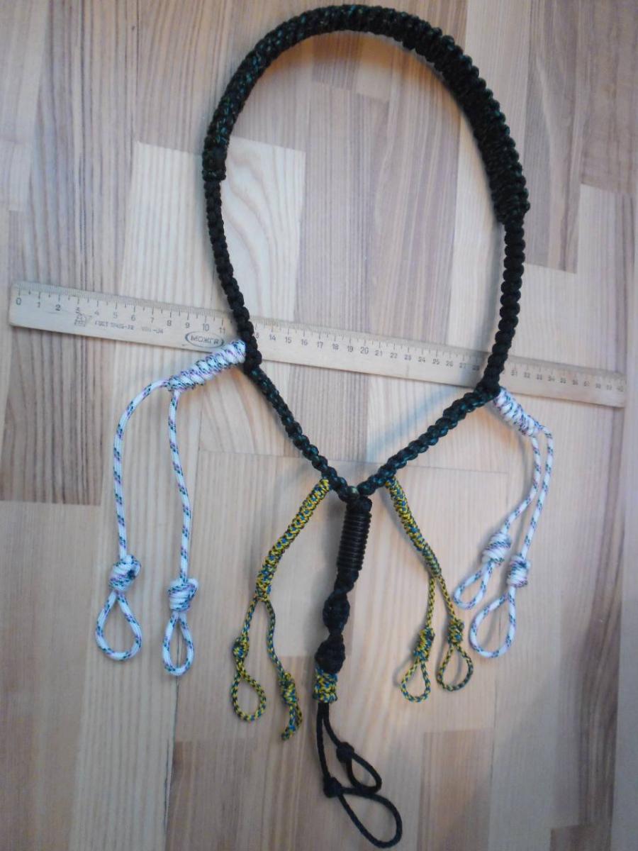Боковые поводки свободно перемещаюстя по подвесу и фиксируются удавкой.