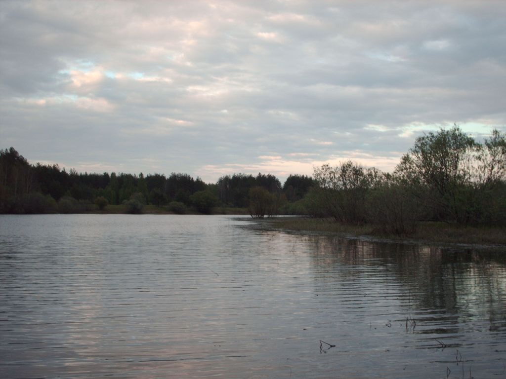 Повисает пауза, но спрашивать его друзей более бесполезное занятие – они еще пьянее. Наконец-то до Предводителя дошло, что от него хотят, и он начинает долго и путано объяснять нам, как проехать до старицы, до которой от сюда около пяти километров. Толи он пошутил, толи его пьяный мозг дал сбой, но с ключевым поворотом на развилке он нам наврал – указал прямо противоположное направление движения. Однако интуиция и в этот раз не подвела ВИ, и после получасового буксования в низинке мы всё таки выехали к Полустной старице. Представляла она собой неглубокое озеро пару километров длиной и метров двести шириной. Левой стороной она соединялась с Ветлугой. Деревья на противоположном берегу подошли к самой воде. С нашей стороны раньше была деревня, и поэтому лес еще не успел захватить поле, на котором в густой траве с трудом угадывались следы домов. С лева у края леса в старицу впадал небольшой ручеек. Здесь, среди молодого сосняка, мы и решили устроить свой лагерь.