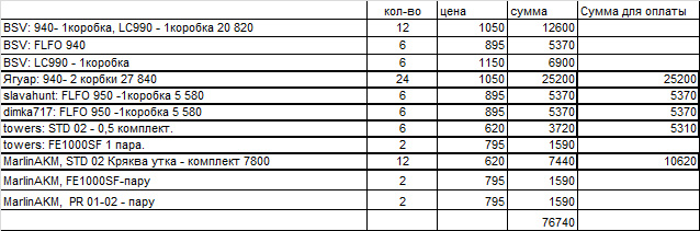 dimka717: FLFO 950 -1коробка 5 580 - чучела получил