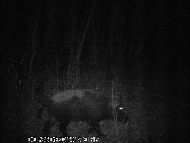 В темноте на 25-30 м можно различить силуэт зверя, у нас даже кот попался на фото - на выброшенный сыр заглянул:ag:.