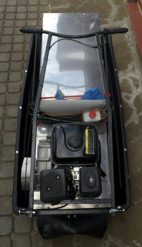 Транспортировочное положение : в санях-волокушах.(сани 1шт. и транспортировочные бандажи в комплекте)