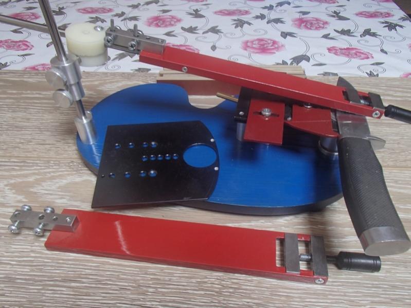 Держатель-зажим для брусков - по умолчанию - для брусков размерами 200х25х8, в него же можно вставлять бруски 159х25х8 на бланках со скосами(или без скосов).Держатель брусков позволяет после смены абразива попадать точно в тот же угол не зависимо от толщины и не параллельности сторон бруска, что существенно увеличивает скорость и точность заточки и получать плоскую ровную фаску.