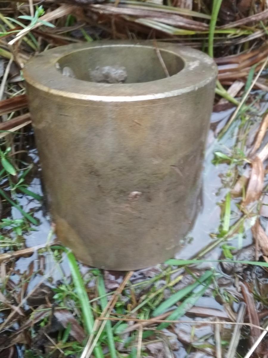 Какая то бронзовая втулка... типа подшипника скольжения. Нужно поглядеть - есть ли дырочка на боковой поверхности для подливания жидкой смазки? А вообще с металлоискателем там бы пройтись интересно было бы.