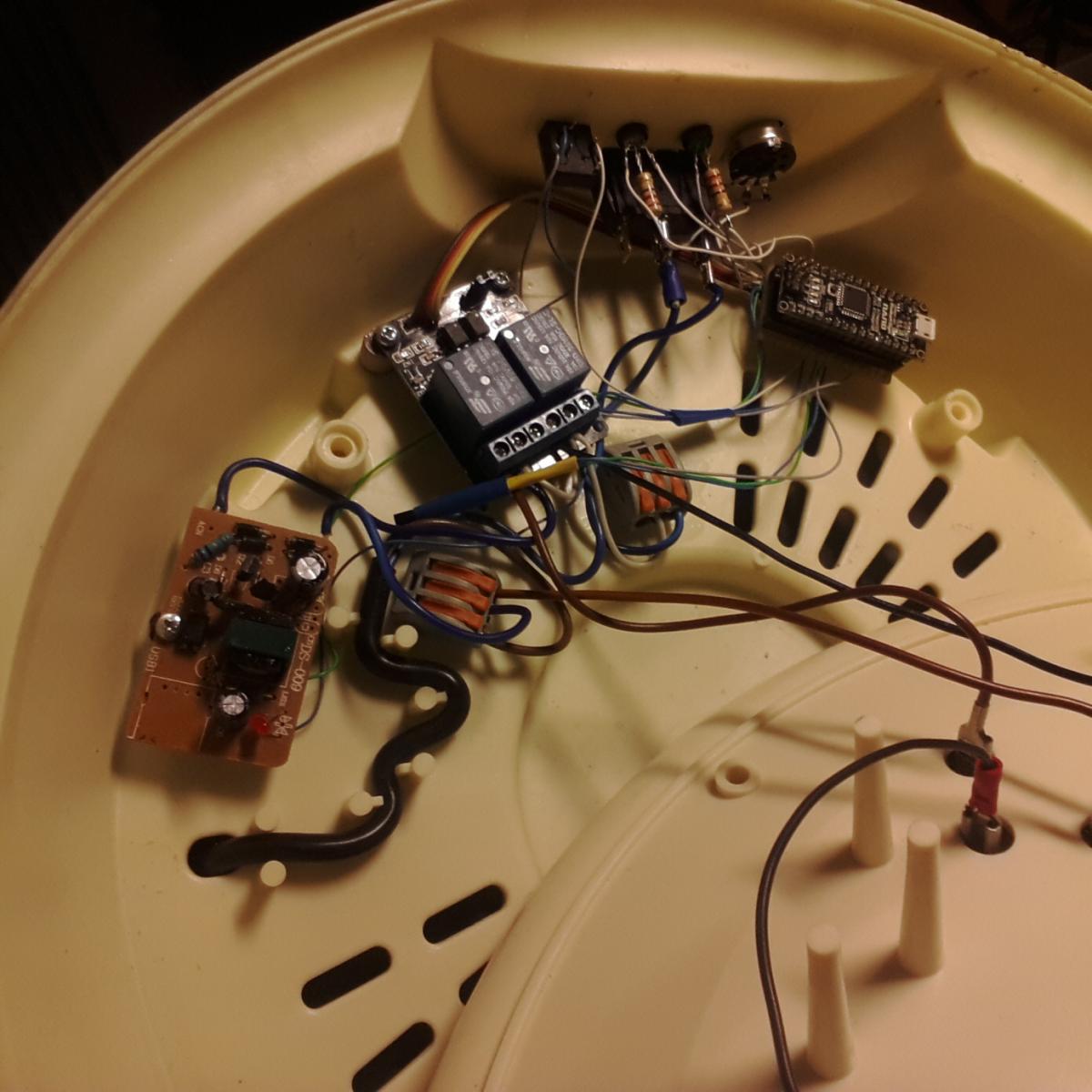 Выбор пал на единственный доступный вариант - arduino. Микропроцессор, с возможностью высокоуровневого программирования. Пара недель вечеров с паяльником в руках и тестов прошивки показали состоятельность идеи - вне зависимости от изначальной влажности исходного продукта, типа самого продукта, количества поддонов, сушит. Но, не пересушивает. Плюс - экономит электроэнергию, мелочь, а приятно.
