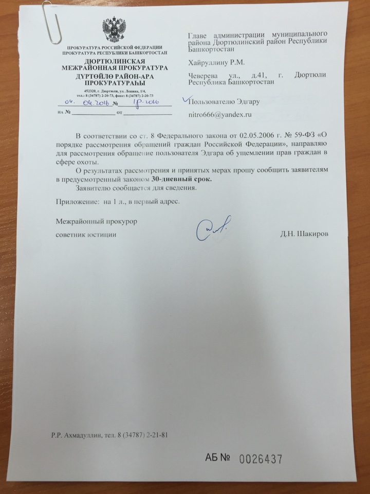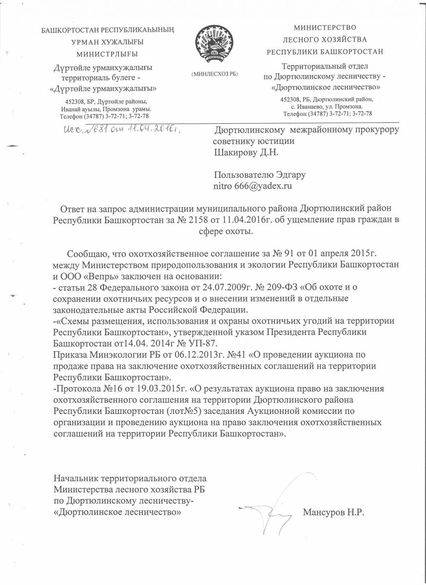 Написал письмо в прокуратуру за незаконную аренду охотугодия