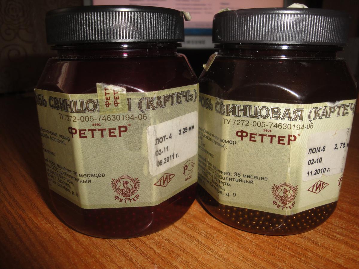 Продам 2 неполные банки дроби Феттер №4,№6,в каждой больше кило или обменяю на пачку патронов от №5 до №0
