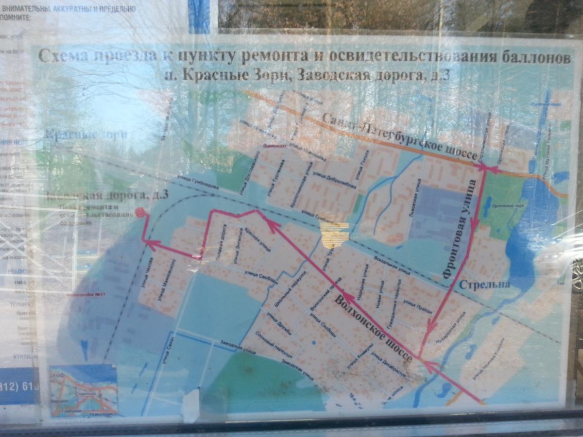 Ремонт и освидетельствование баллонов там же не далеко п. Стрельна, Заводская дорога, д. 3 (тел: 421-40-94)