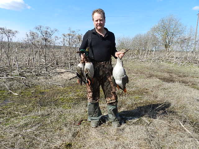 Резко поднимаюсь, немного неудачно вкладываюсь (зараза адреналин) выстрел и первый гусь падает, выцеливаю второго стреляю еще 3 раза, меняя упреждение, но мимо, однако настроение просто супер. Через пол часа картина почти повторяется заходит стайка, переговариваемся делает несколько кругов, при этом разделилась на две части и облетает кругами навстречу друг другу, раньше такого как то не замечал, высота уже 10м, и дистанция в районе 20м , но хочу повторить посадку, и…… не получается гуси улетают и не возвращаются, а жаль. Лета больше не было. Попутно занялся утиной охотой, взял трех селезней, вечером вышел на Вальдшнепа подстрелил двух, но к сожалению нашел только одного, хотя искал очень долго.