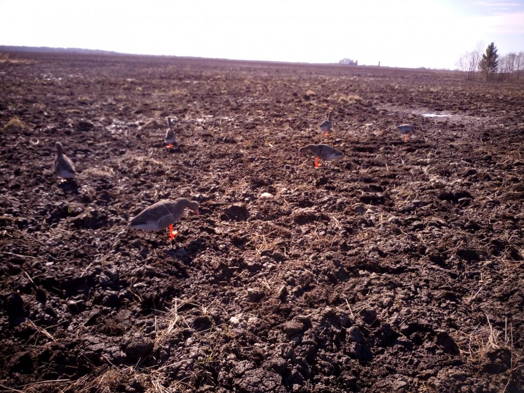 Каждый раз ждешь открытия охоты, считаешь дни, просматриваешь когда и где идет первая волна, и очень тянет в поля, на поиски того места где никто не помешает тебе уединиться с природой,и поразговаривать с пролетающими стаями и посадить их в чучела. В этом апреле ну не вышло у меня заранее поездить и найти такое место, и времени было в обрез, и вырваться смог только во вторую половину пятницы, по этому ехал с верной напарницей супругой туда, где гусь точно есть, но и народу тоже зашкаливает.