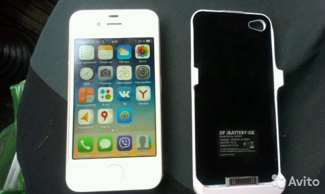 iPhone 4 8 Gb белый в отличном состоянии, на экране защитное стекло + чехол-аккумулятор (очень полезная вещь).