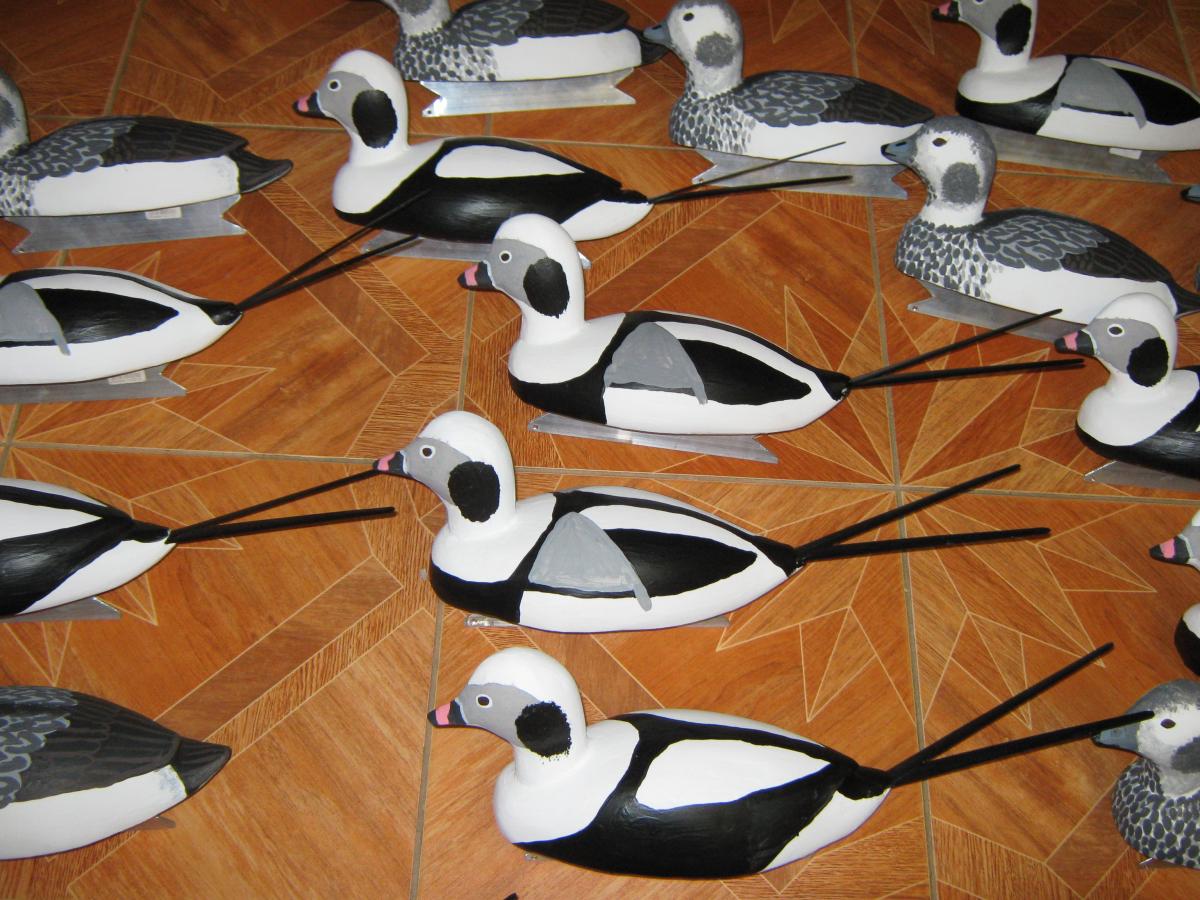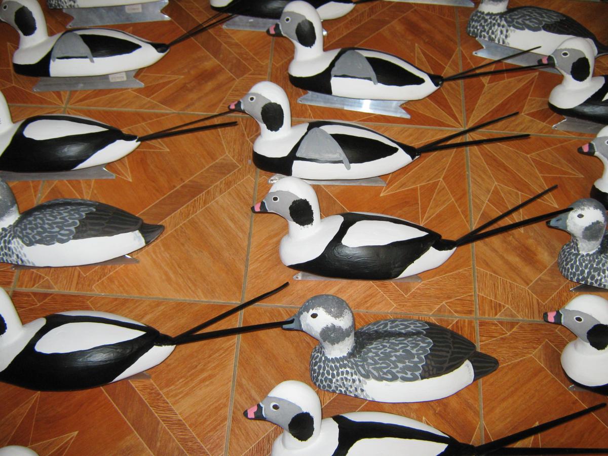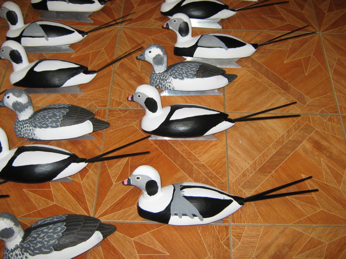 Обещанная последняя часть истории начавшейся в конце февраля.Вся стая морянок из10 самок и 15 самцов полностью готова к исвользованию.Все чучела имеют разные позы и поворот головы.Окраска зимняя-именно такая нужна для охоты в нашем регионе.Представляю к оценке.
