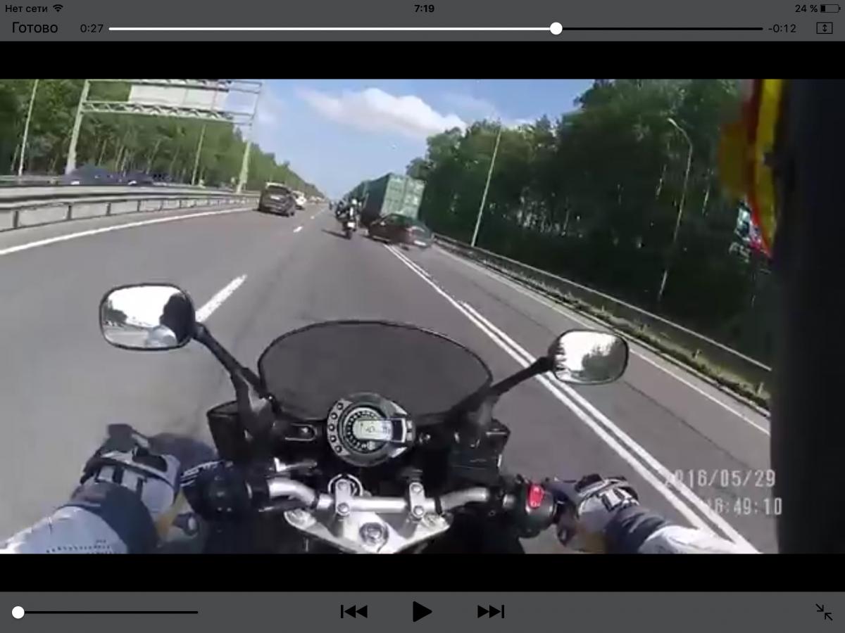 Дачник, конечно, смотрел назад, видел ТОЛЬКО мотоцикл сына, а парня рядом - нет. Считая, что помехи нет (мотоцикл моего сына ведь далеко), начал резкое перестроение. И только в этот момент заметил мотоциклиста рядом. Дальше все понятно: испуг, резкое торможение, потеря управления и неспособность вывести машину из заноса. Даже и попытки не было повернуть руль. Мало того, в покадровом просмотре видно, что ВОДИТЕЛЯ ЗА РУЛЕМ НЕТ! Это отдельно обсудим с удовольствием ))
