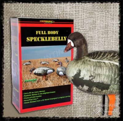 Это надувное чучело гуся продолжает линейку популярных приманок для охоты на гусей американской фирмы "Cherokee Sports", специализирующейся на поизводстве надувных чучел для охоту на птицу. Больше известны ее чучела гусей для установки на поверхности воды - для охоты на гуся на водоеме. Но идя навстречу пожеланиям охотников из различных уголков Америки и учитывая различные условия гусиной охоты, фирма произвела модель и для использования на суше, для установки на поле. Надувные чучела гусей выглядят очень натурально, благодаря своей объемности и очень реалистичной раскрасске. Установленные во время охоты на гусей, эти надувные чучалки гусей покачиваются на опорных стойках, издалека вызывая полное ощущение кормящейся стаи живых гусей.