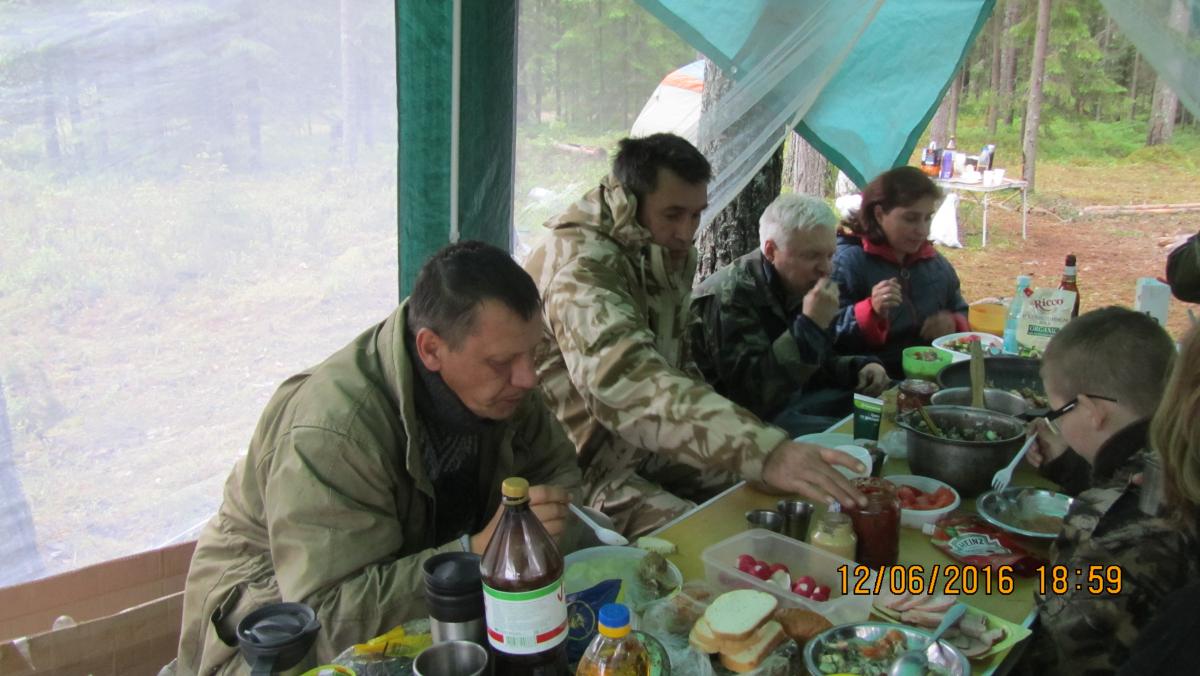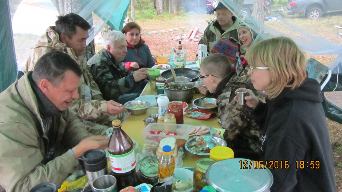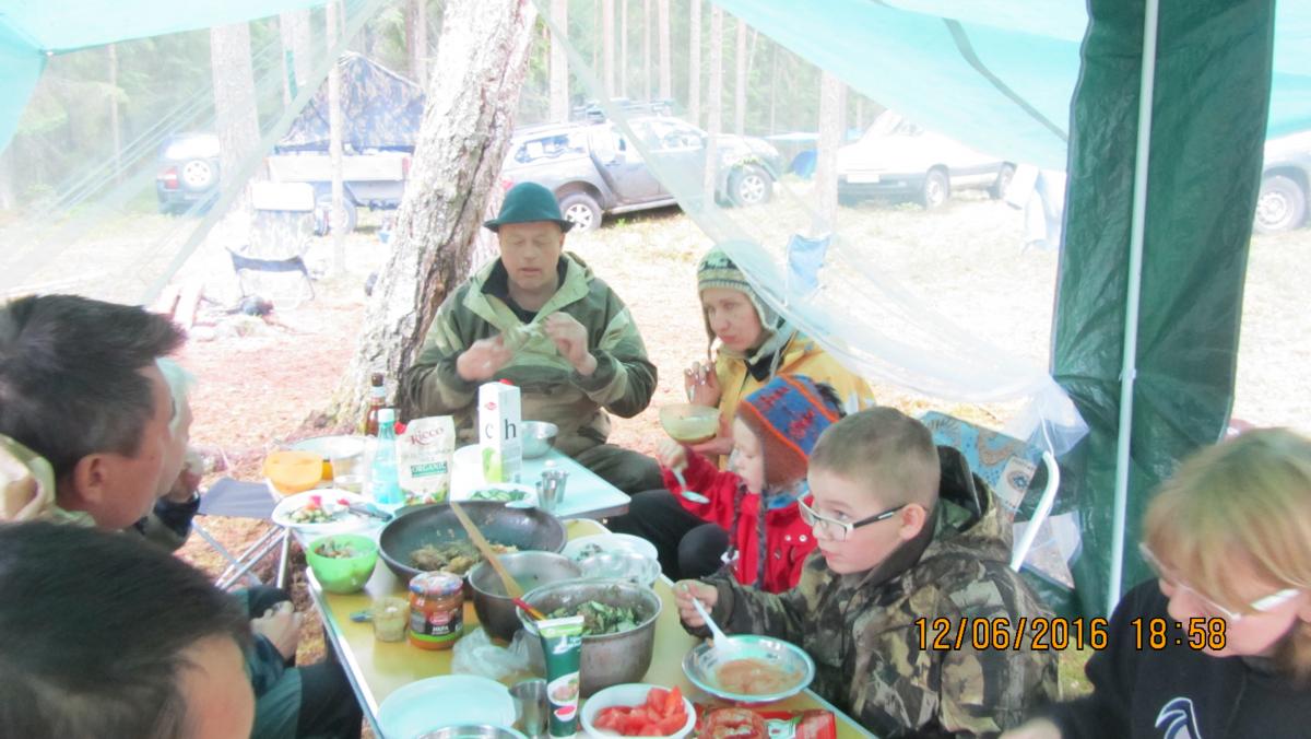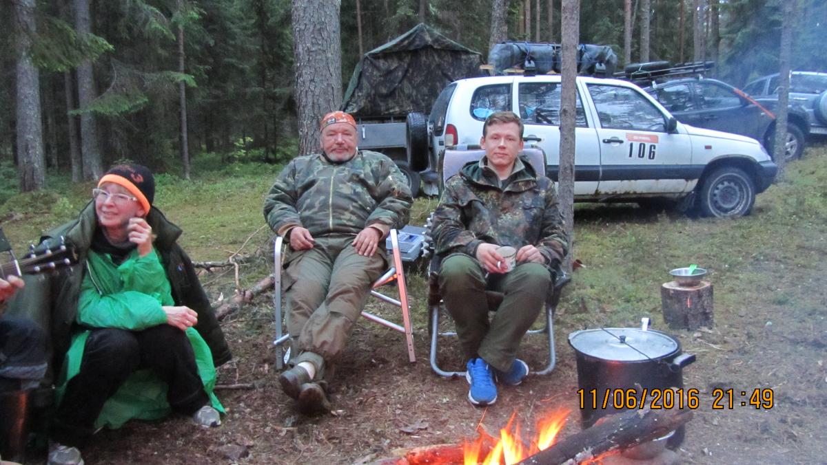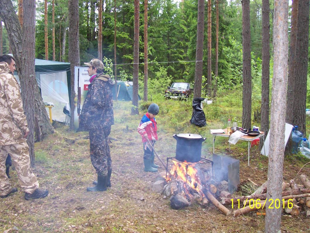 Оговорюсь сразу, к сожалению не участвовали - просто заглянули с LarS'ом "на огонек". Нас не узнали (слишком давно мы не появлялись на мероприятиях), но в старых добрых традициях Клуба нас встретили очень радушно, что было, безусловно, приятно... Экипажи были ещё в поиске, а организаторы хлопотали по хозяйству. Денис, встретив нас, уехал вызволять из песчаного плена двух очаровательных путешественниц из Москвы (в фотоотчет, к сожалению, не вошло), а Юрий готовил наивкуснейший (я так думаю, поскольку не смотря на настойчивые предложения остаться, были вынуждены уехать до подведения итогов) суп из синявинского глухаря.
