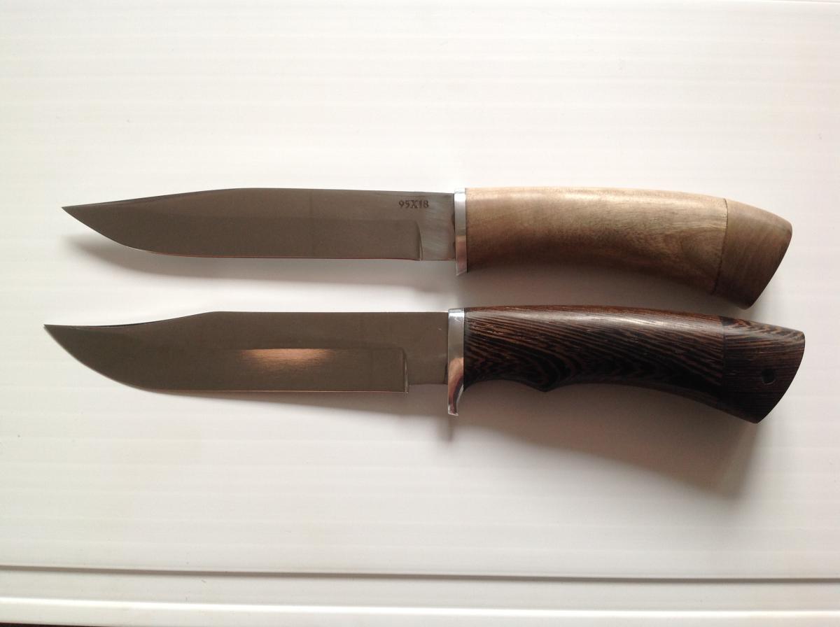 Заказал у Юрия нож из серии Ковка за 1000. Последнее фото, где 2 ножа. Нижний, с упором и коричневой рукоятью.