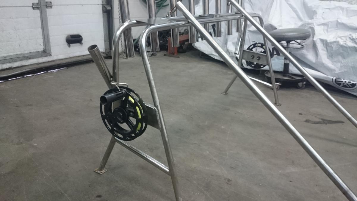 Сама тарга в сборе с отводами для шнура, катушки BIG JON, шнуры лучше поменять, блок той-же фирмы, к сожалению только один. На втором фото отводы сняты, для транспортировки. Стояла тарга на Амуре, думаю вполне подойдет к любому отечественному катеру, или подобному зарубежному, высокие отводы сделаны специально для того чтобы шнур не тонул и прищепки не срывались волной. Цена 20 000 рублей.