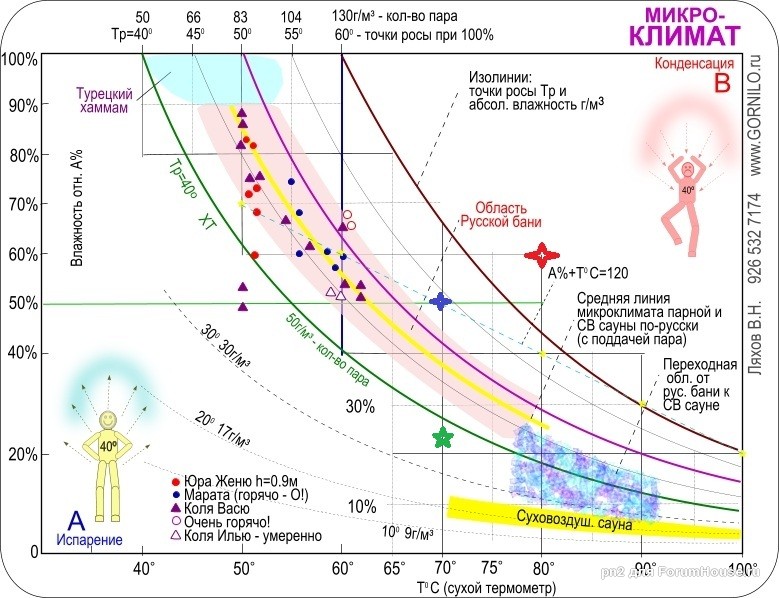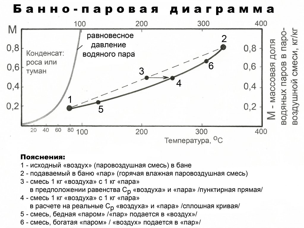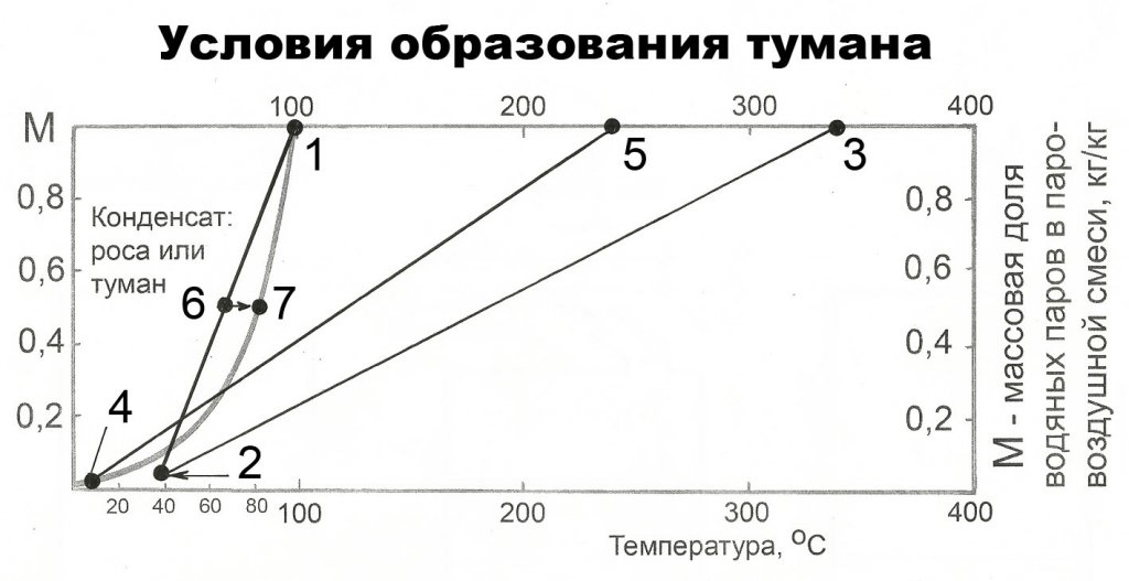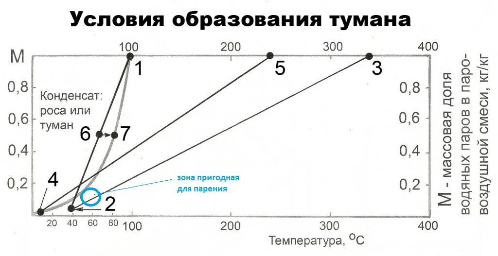 Для анализа явлений смешивания пара с воздухом воспользуеися "банно-паровой диаграммой" - Теория бань, стр. 160