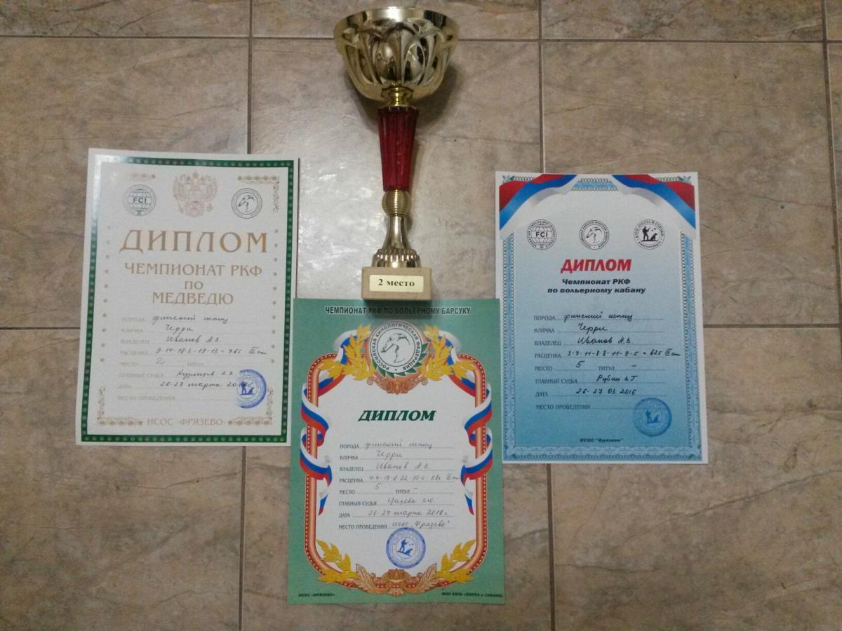 10. Все дипломы за рабочие качества с указанием по виду дичи:3- III медведь подсадной, II медведь подсадной в паре, III медведь подсадной а паре, 3-III вольерный кабан, II вольерный кабан в паре, II вольерный барсук, III вольерный барсук.