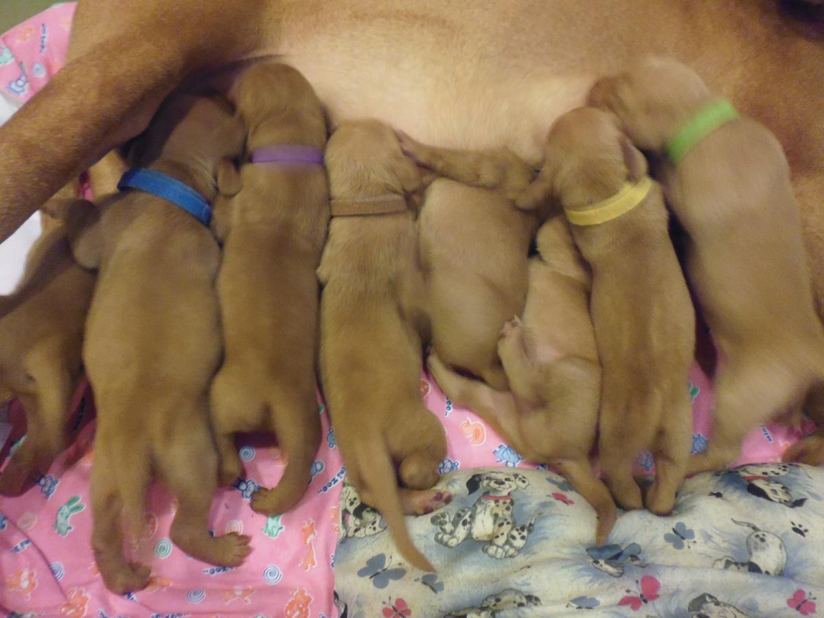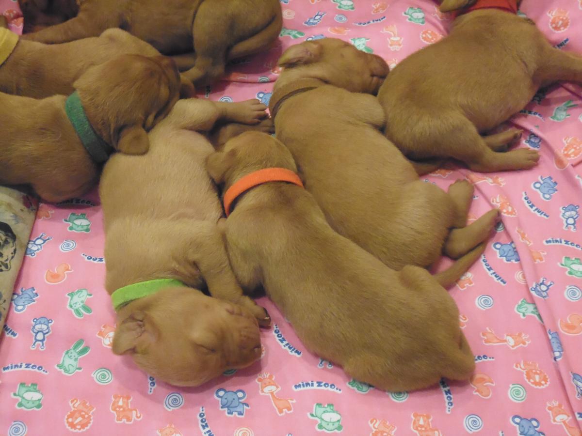 24 июля родились щенки от рабочей пары, 5 кобелей и 5 сук.