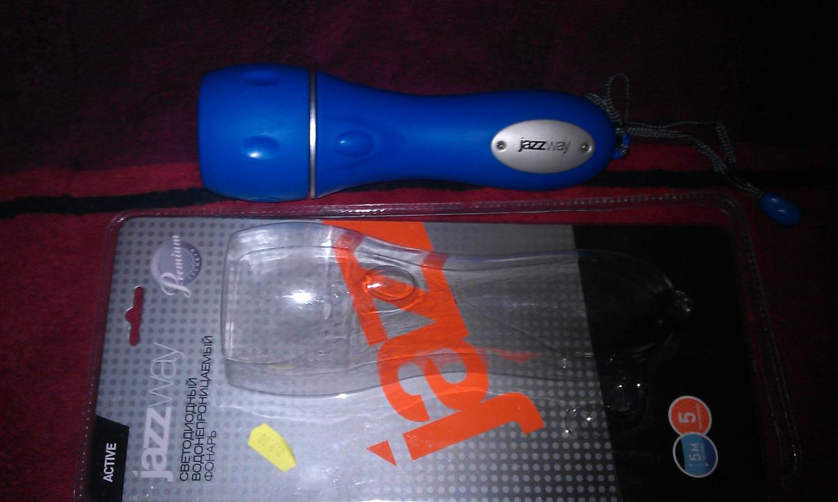 Фонарик Jazzway погружение до 5м, 5 диодов, работает на 2 LR20, можно светить на суше. цена 500р