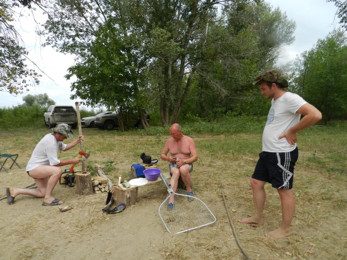 Дорога заняла 2 дня, утомительной была вторая часть пути между Тамбовом и Волгоградом (из за крупной аварии трасса была перекрыта и объезд по убитой дороге составил 140 км). По пути купили арбузы, дыни, овощи на все 10 дней отдыха. Перед поездкой у нас была информация, что отдыхающих столько, что палатку поставить негде, но на месте мы выбрали место, где у нас был собственный пляж примерно 200метров, и ближайшие соседи слева и справа были не ближе 200 метров. Возможно большая часть уже уехала перед школой (15 августа наверное все уже с детьми дома) , во всяком случае рекомендую это время для поездки, температура средняя 35 градусов, вода 24 (очень приятно после дождливого Питерского лета), овощи фрукты почти даром и почти нет комара. Установка и обустройство лагеря заняло пол дня, что удивило, что место было чистое, без мусора, если не считать кучи окурков, которые были сразу убраны, и естественно мы затем оставили лагерь в чистом состоянии. По рыбе все рыболовы жаловались, что ее либо нет, либо не клюет, и 95% рыболовов довольствовалась мелким подлещиком, я в это никогда не верю, надо просто знать где на что и когда ловить. После установки лагеря пошли ловить ракушек перловицы, лучшая насадка на сома, и утром на Волгу. Первая поклевка не заставила себя ждать, и первый сом примерно на 8 кг в лодке, затем до полудня поймали еще двух. А далее как по задуманному каждый день , если ловили сома то это 3 – 6 штук от 5 до 15 кг( рекордных не было, но зато все поймали и получили кучу удовольствия). Три дня посвятили сазану, каждый раз накануне варили большой котел каши из кукурузы, гороха и жмыха, с добавлением в готовую кашу бойлов, место искали где стол глубиной 6 – 7 метров и близко яма, в итоге первая рыбалка 6 сазанов, вторая 7, третья 9 весом от 5 до 9 кг. Конечно столько рыбы нам было не нужно по этому 80 % либо отпускалось, либо дарилось соседям, вечером выходили на судака он тоже поклевывал но не крупный. Хочется отметить, что не смотря, что в основном питались рыбой, наши ХОЗЯЙКИ просто отличные кулинары и блюда почти не повторялись, а это и конечно уха, также рыбу жарили и коптили, и отдельная вкуснотень шашлык из сома, и рыба приготовленная в кляре (из пива и муки) пожаренная в масле, супер блюдо “ХЕ” из сазана (корейское блюдо, съедалось на ура), кстати чистить такого сазана можно только топором, и много других блюд…….. Утренний подъем был всегда в 5 утра, призывом “путина”, отбой в 21 – 00, тратили столько энергии, что срубало всех, но 8 час сна вполне достаточно чтобы восстановиться. Из интересного нашли пятачок на Волге где поверху стояла ОЧЕНЬ крупная рыба (на вид около 20 кг возможно жерех), почти не клевала ни на чего, периодически были поклевки на “цикаду”, как правило это удар, чуть не выбивает спининг из рук, далее как коня подвесили и работает фрикцион, при чем если его поджать, то спининг сгибается и ощущение что вот вот и сломается, а далее сход рыбы и все, так и не поймали, хотя сорвалось за 3 вечера четыре штуки, зато осталась интрига, и желание вернуться в следующем году, такое желание в общем то у всей команды, и судя по их рассказам друзьям, на следующий год команда наверное увеличится.
