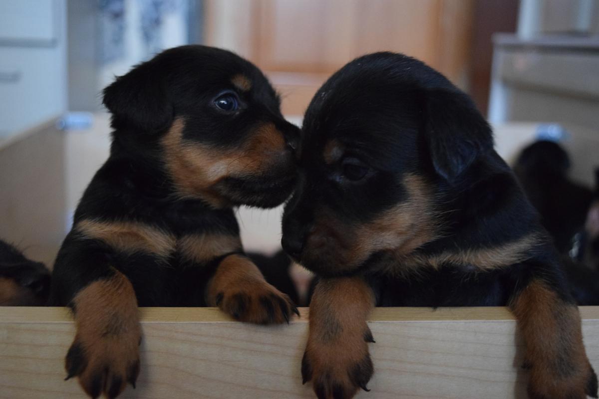 Щенки очень активные, злые, крупные, приучены к туалету на тряпочку или газетку, самостоятельно кушают.