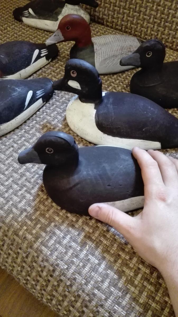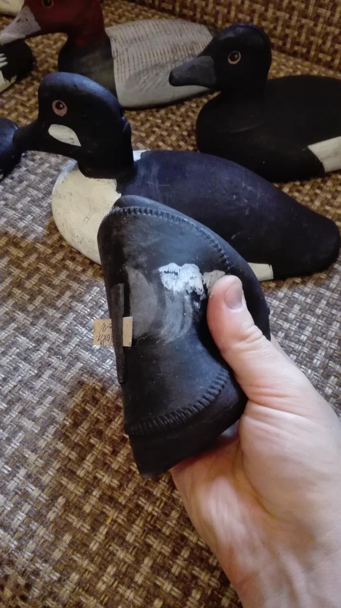 Краска матовая. Не блестит. Снизу приклеена резиновая полоска для подвязывания груза (ее проклею после того как привяжу веревку резиновым клеем). Осадка на воде (пока в ванной) нырковых натуральная, кряква тоже ничего. Достаточно компактные. Окрастка похоже и прям ручной процесс))) это радует.