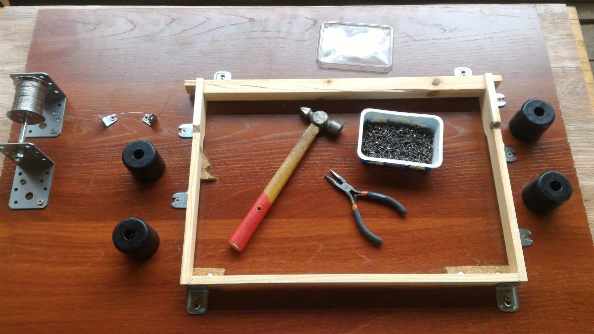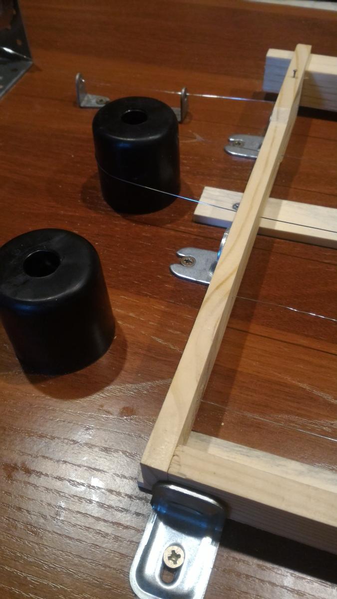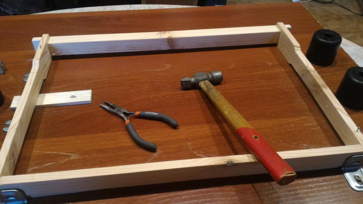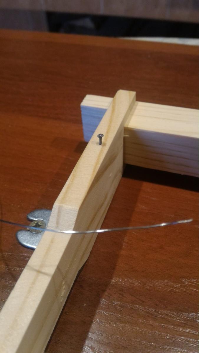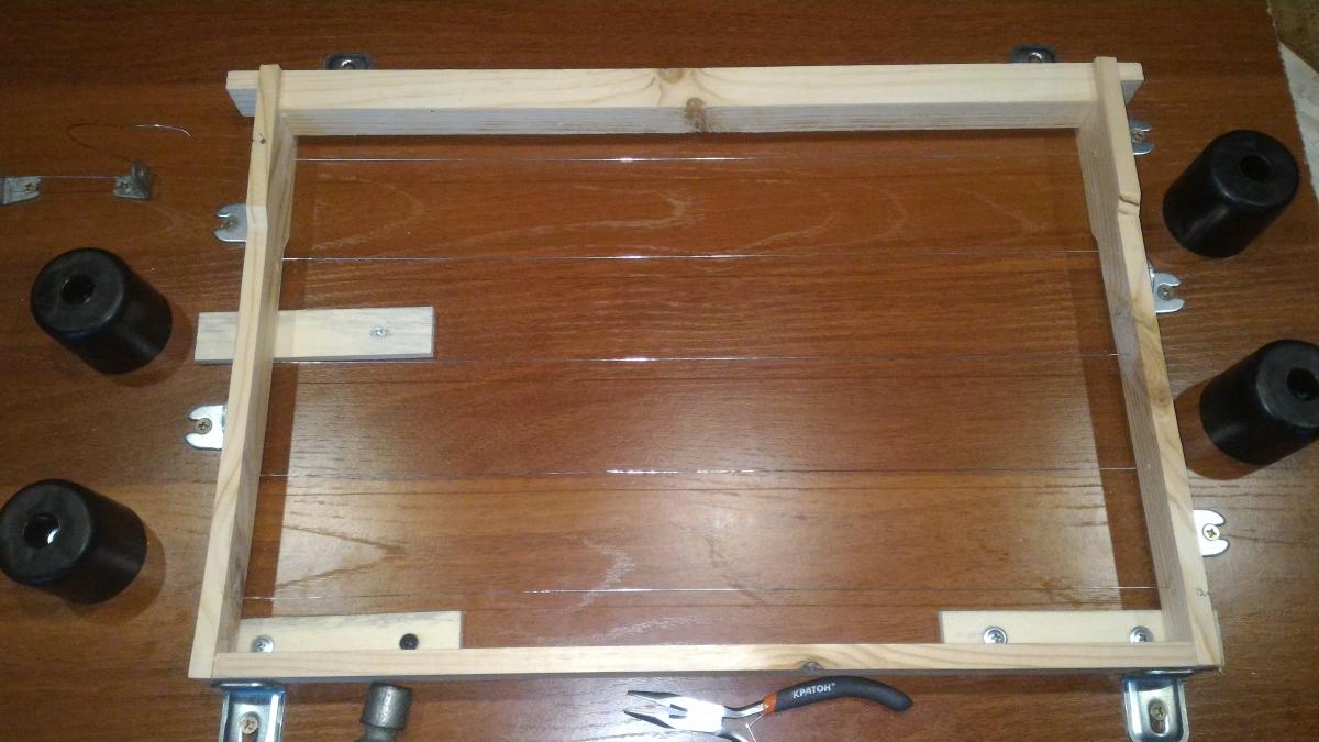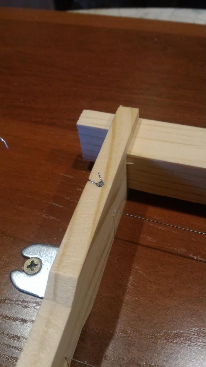 У меня похоже, но на 4 проволоки и рамку сбоку поджимаю присбособой от пистолета для герметика. Очень удобно, по сравнению с "на коленке".