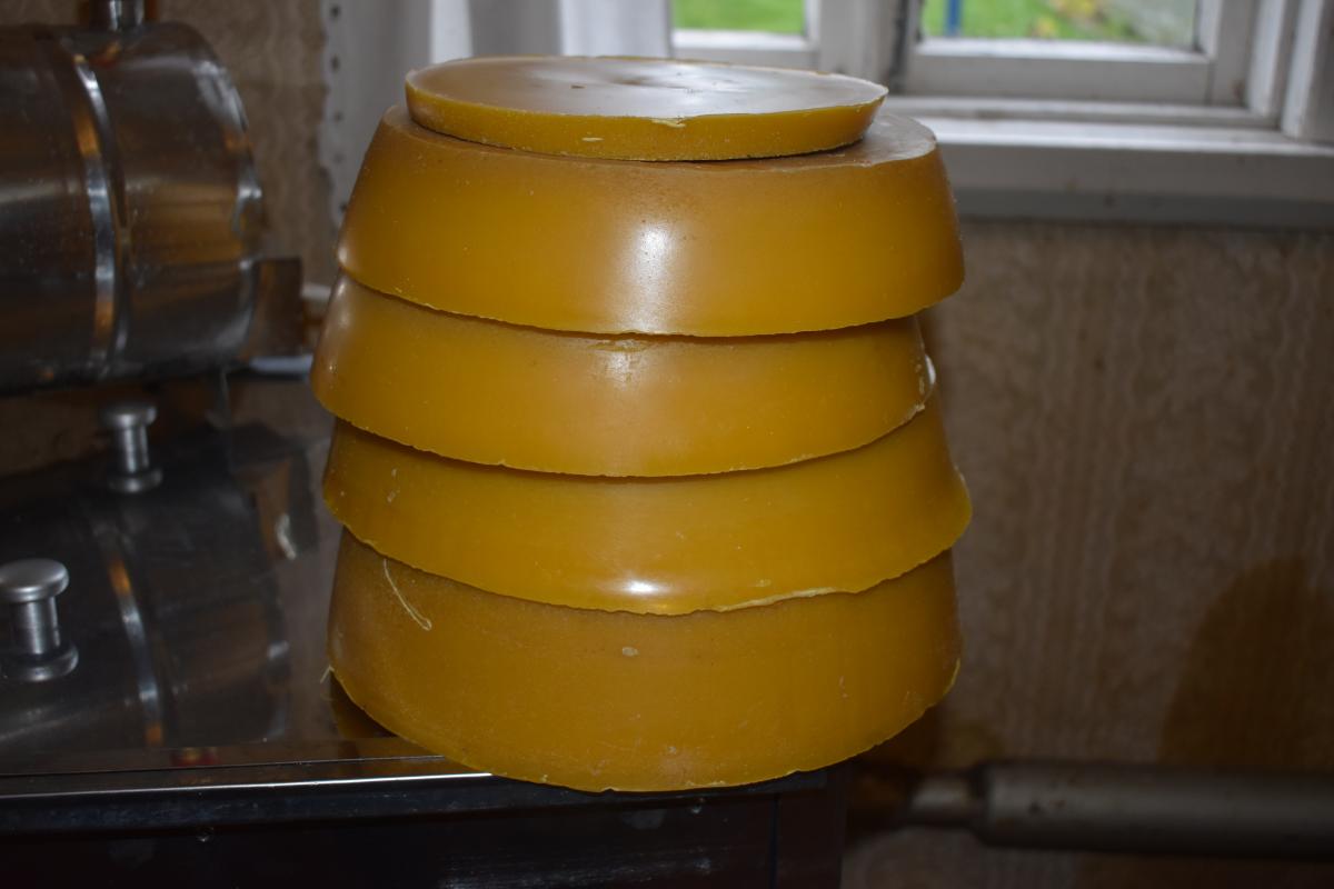 Ну вроде наладил изготовление своей вощины. Приехала силиконовая форма от фирмы Листопад из Москвы. При изготовлении вощины возникли проблемы из за неодинаковой толщены форм, с краёв толще в ценре тоньше. Пришлось устранять при помощи монтажного клея при приклеивании к доске. Еще производитель утверждал что у его хитрый состав ворм которые не надо смачивать что б легче отстовал воск. Так оно и было но на первом десятке отливки , а потом стало прилипать. Но при опрыскивании отваливается сама. Ну в принципе вот.