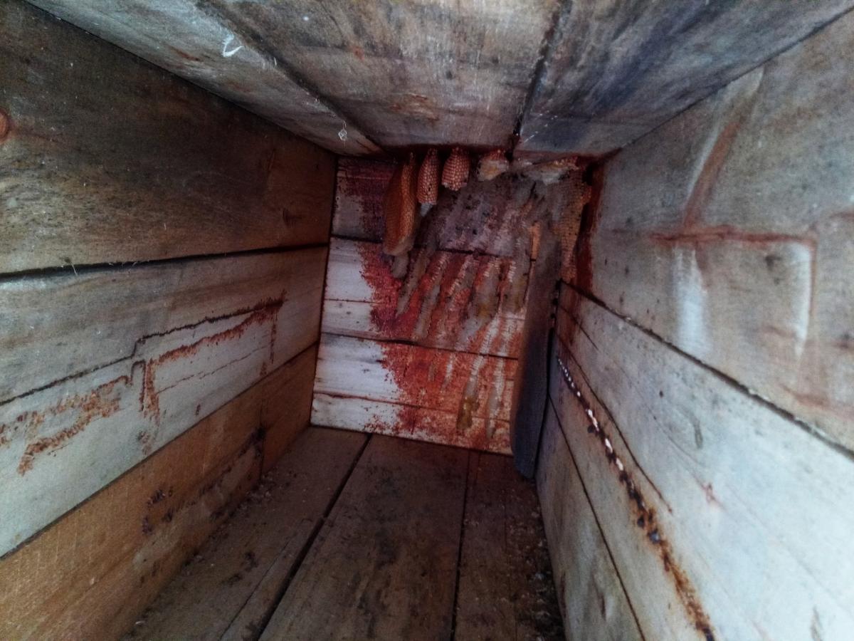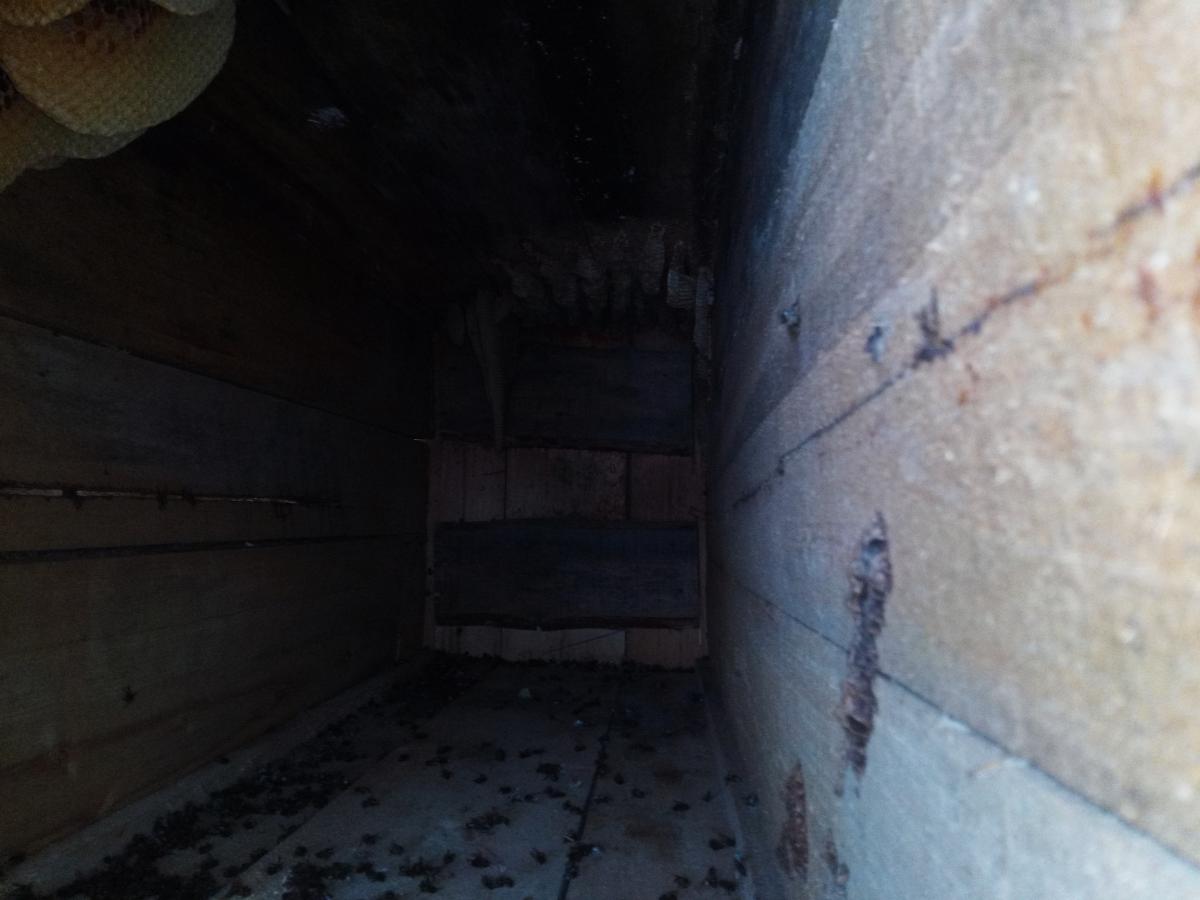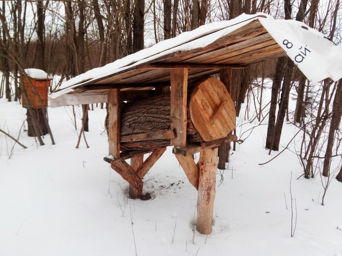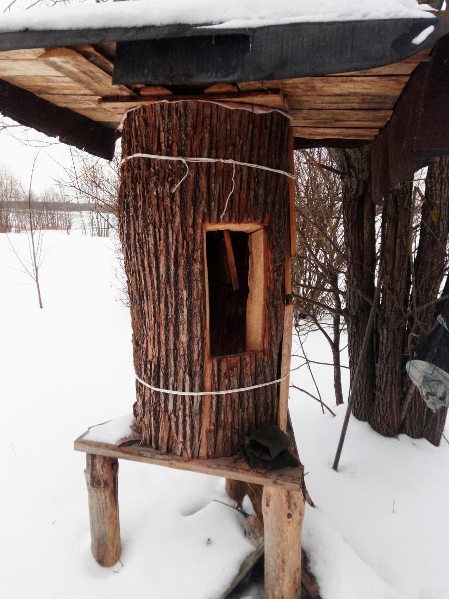 В полях наткнулся на колодную пасеку. Видимо кто-то так пчеловодит, рассчитана на заселение дикими, а потом что-то вырезают, остатки на произвол судьбы в зиму бросают.