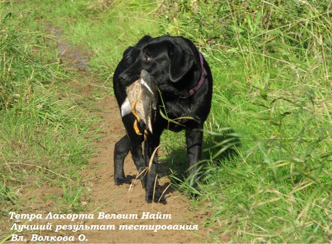 После испытаний было проведено тестирование, в котором приняли участие 4 собаки: 1 флет, 1 голден и 2 лабрадора. Лучшим участником тестирования с оценкой "очень хорошо" стала лабрадор Тетра Лакорта Велвит Найт (Чайка), вл. Волкова О. Она же получила приз как самый юный участник тестирования (8 месяцев).