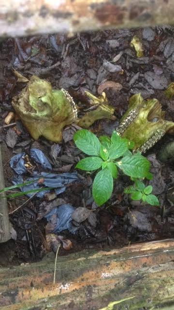Кстати, метрах в 50 от этого места, следы ну наверное волчьи, моя собака весом в 35 кг, рядом след, раза так в 4 больше. Не сфотал. Следы кабаньи и волчьи совсем свежие. В клетке явно не волчьи черепа))
