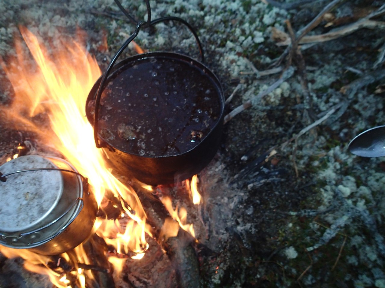 На какой то период дождь стих и мы смогли приготовить обед.