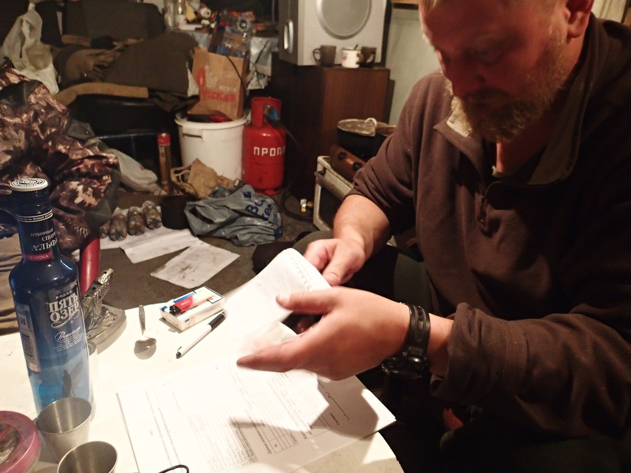 Закупили продукты в местном Дикси - обошлось в 9 тысяч рублей, плюс самодельная тушенка, плюс спирт. В основе закупки были гречка и макароны. Плюс бичпакеты. Соль, сахар, чай. И разные ништяки типа сникерсов, твердокопченой колбасы и т.д.
