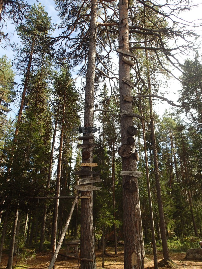 План волока решили переделать на ходу. Решили попробовать дотащиться до безымянного озера из которого вытекает ручей в Пану и надеяться, что ручей проходной. Вещи свалили на краю леса в 500 метрах от озера и заботливо укрыли тентом.