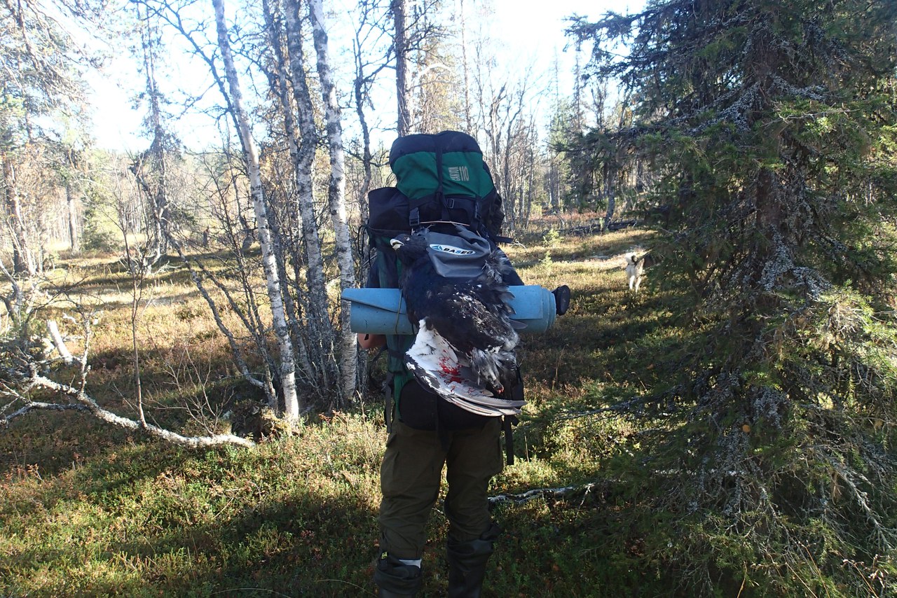 Ермак все время бежал немного впереди и накопытил нам глухаря.