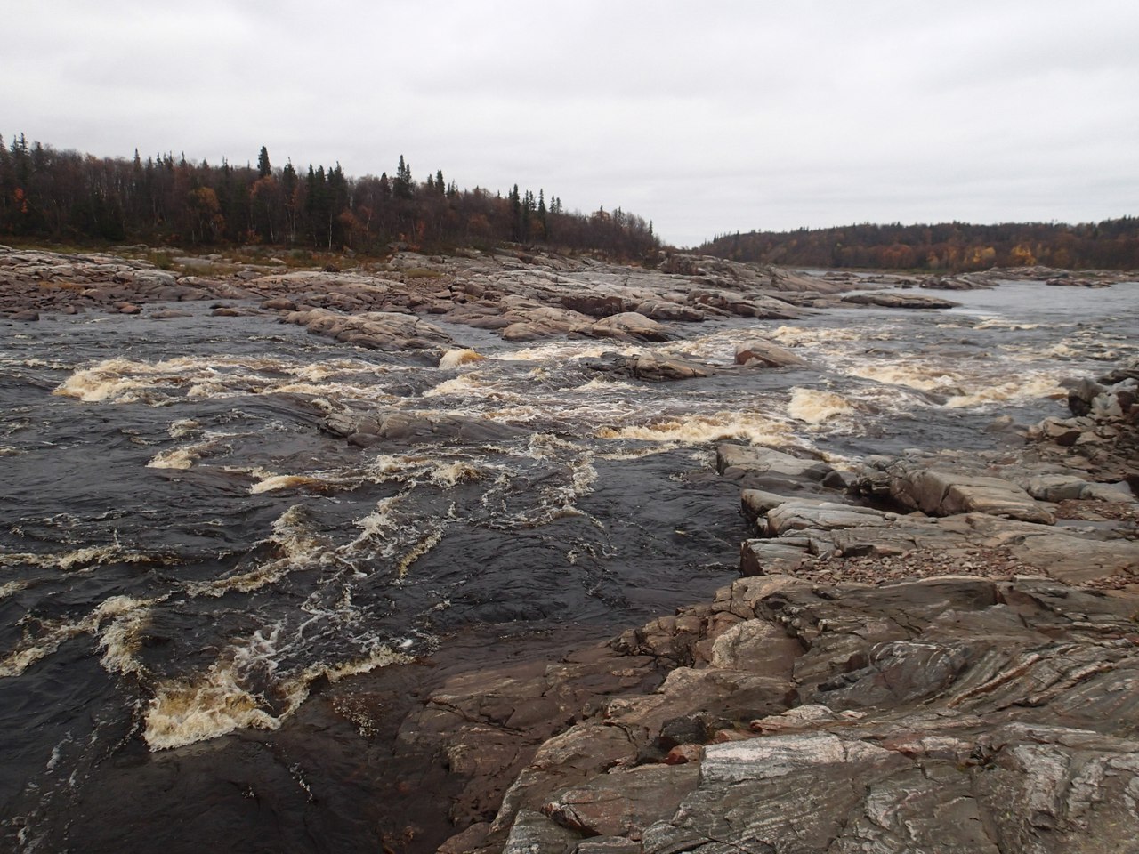А в этом безобидном пороге мы высадились из лодки. На камень зашли бортом и лодку сложило.
