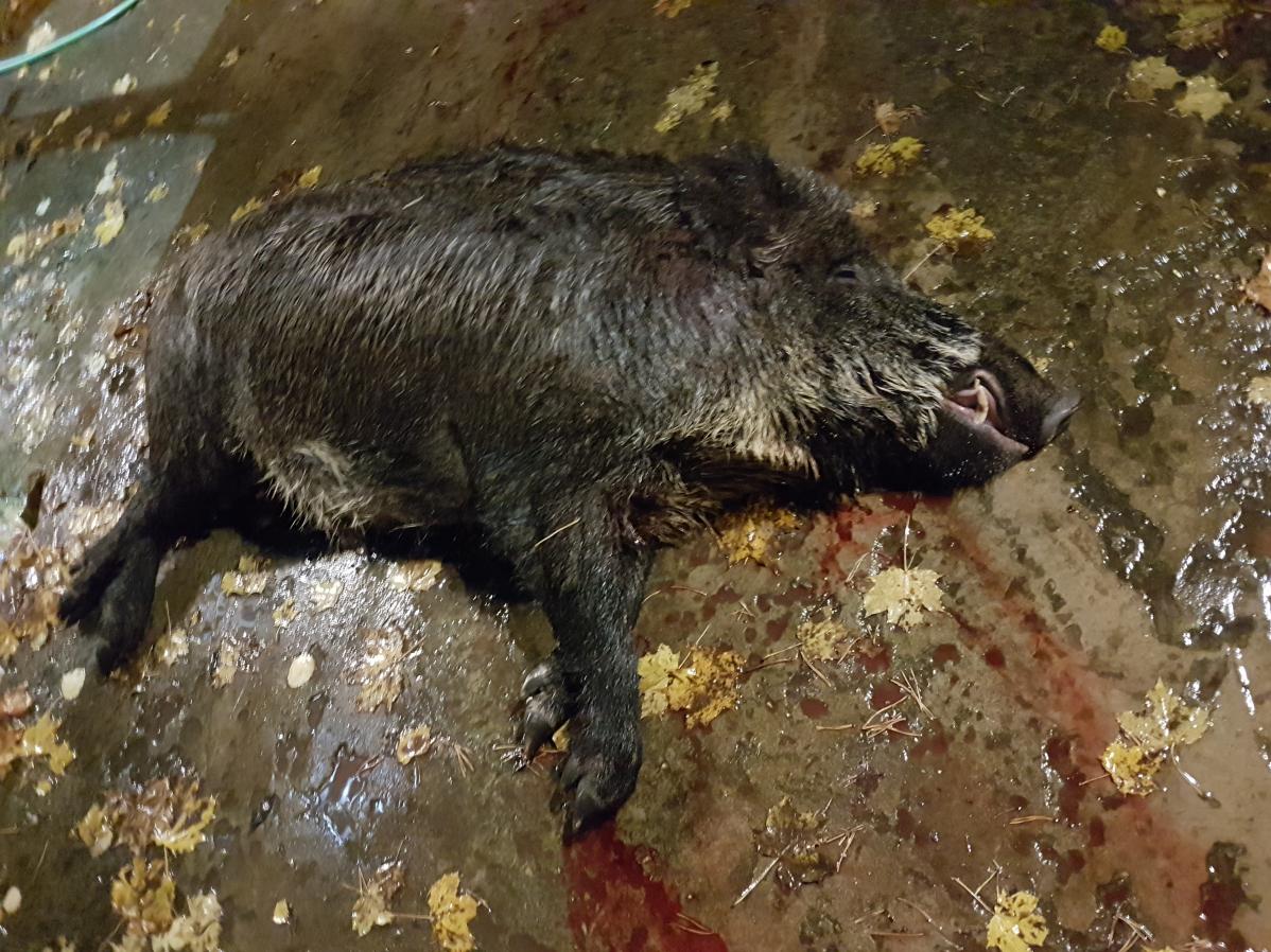 Сижу жду, проходит час и десять минут и опять справа, но значительно правее, что для меня лучше из-за ветра, замечаю пятно уже на поле. Пятно вижу урывками, темновато, но фоне поля можно разглядеть. Пятно движется нервно, отскакивая назад и рывками двигаясь вперед. Опять предательски громко застучало сердце, открываю рот, чтобы тише дышать. Руками медленно начинаю поднимать карабин. Включаю ночник уже во вкладке, чтобы не дать пятна света. Упираю локоть в колено, готов. ИК фонарик на прицеле не включаю, так как не один раз разбегались кабаны, освещенные им. Теперь четко вижу темный силуэт кабана - он движется, метров восемьдесят-девяносто. На этой дистанции у меня плюс один сантиметр, можно стрелять, но хочу бить в шею, а он идет полубоком ко мне, скрывая ее. Искал ночью в лесу чисто битого в лопатку кабана, который умудрился пробежать семьдесят метров и зарыться в ельнике, поэтому – в шею. Он останавливается, есть, поворачивает медленно голову в сторону и открывает мне шею. Выстрел.