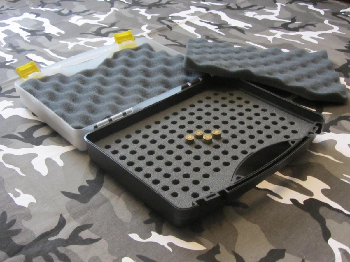 с открытой крышкой кейс можно трясти патроны не вылетят, не гремят и не путаются.